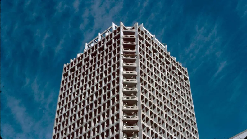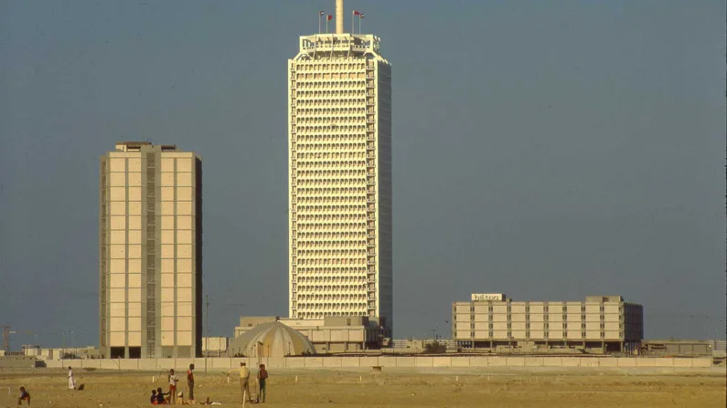 It includes photographs taken between 1976 and 1979 by British architects Stephen Finch and Mark Harris who were engaged in imagining, designing and delivering the city’s future, being both affiliated with John R. Harris & Partners, the British architectural firm behind the 149-meter-tall (489-foot) World Trade Centre.