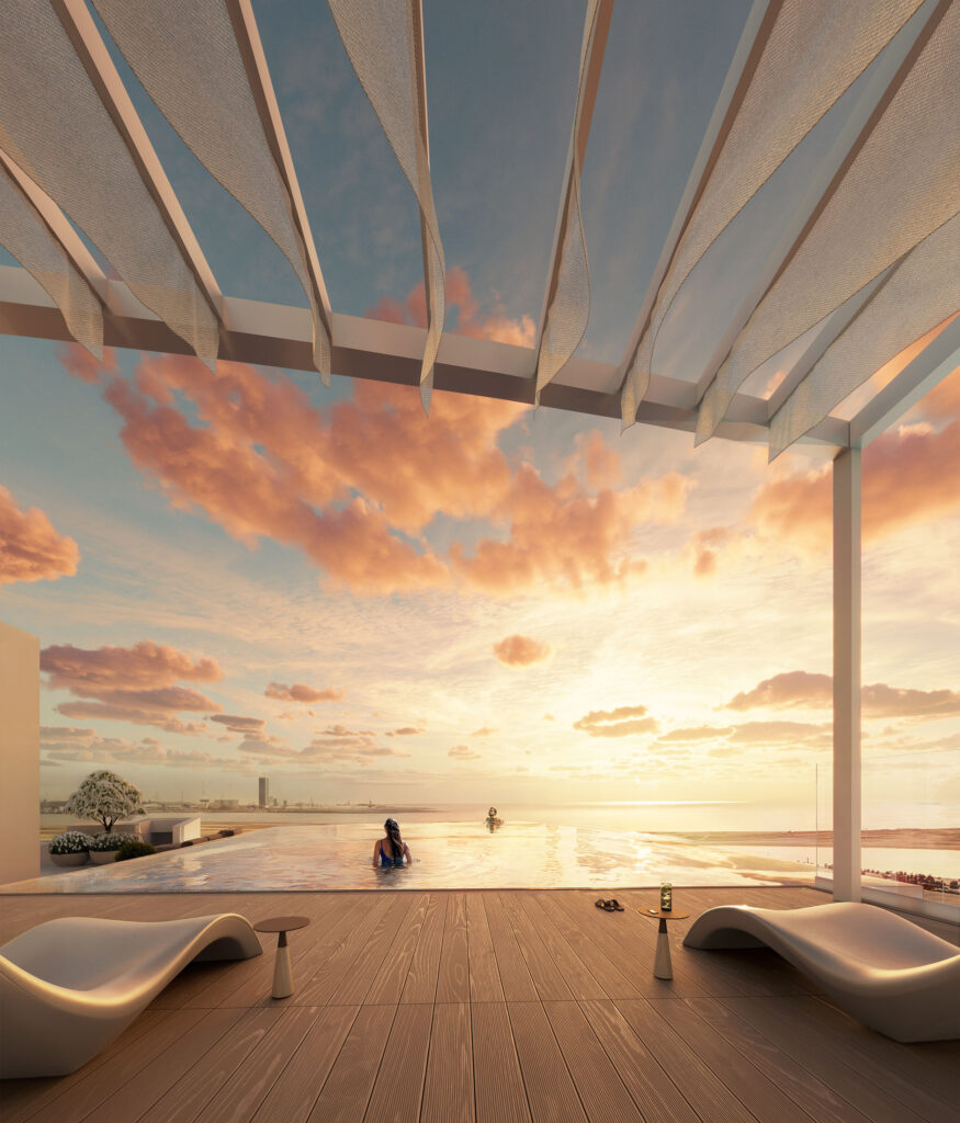 Cascades is a Branded Service Apartment proposed in Dubai Island which is an upcoming mixed use district. The building with its distinctive cascading terraces capturing the best views of the Arabian Gulf – consists of a total 16 hotel apartments along with amenities inclusive of all day dining, branded spa, Gymnasium, roof top bar, roof top infinity pool and associated BOH area for the operator.