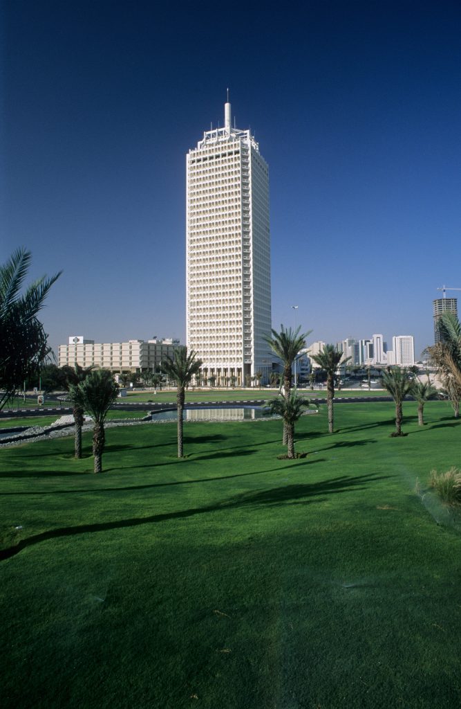 Dubai’s first skyscraper and business centre was designed by John R Harris. It was renamed after HH Sheikh Rashid bi Saeed Al Maktoum, the Ruler of Dubai. The 39 storey Sheikh Rashid Tower, a bold mix of Islamic and modernist architecture is a purpose-built complex for events and exhibitions. The tower was formally inaugurated by Her Majesty Queen Elizabeth II in 1979 and was the tallest building in the Arab world until the completion of the Burj Al Arab 20 years later.